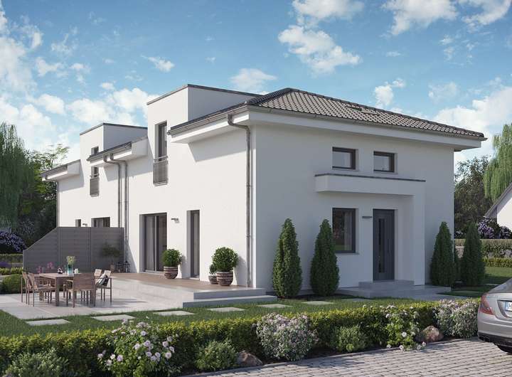 Energieeffiziente Doppelhaus-Stadtvilla mit Walmdach