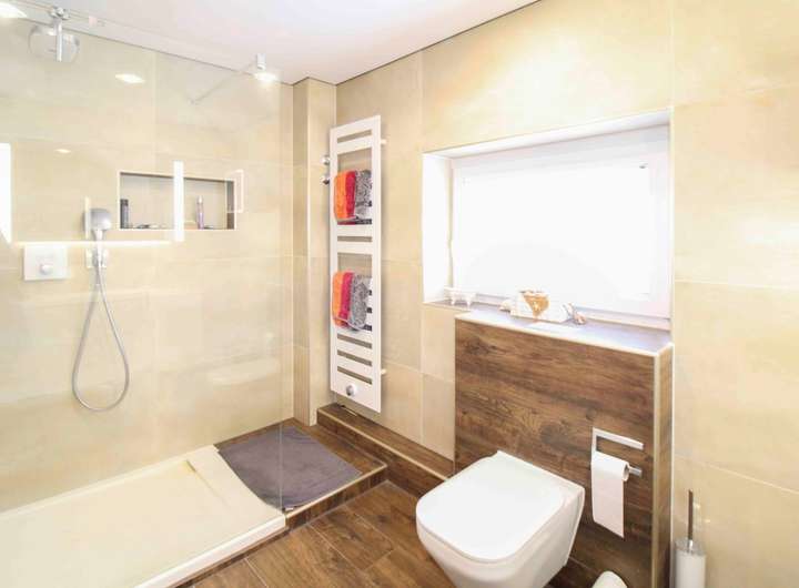 Das Badezimmer wurde 2016 kernsaniert und überzeugt mit Fußbodenheizung, hochwertiger Dusche und vollständig erneuerten Leitungen. Ergänzt wird das Raumangebot durch ein Gäste-WC.