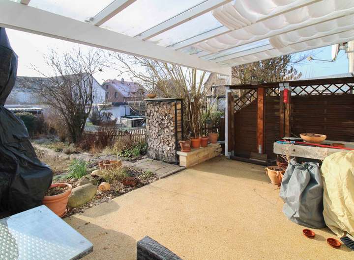 Der Außenbereich mit Terrasse lädt zu entspannten Stunden im Freien ein. Ein Keller bietet zusätzliche Abstellfläche. Abgerundet wird das Angebot durch eine Garage sowie einen Außenstellplatz – ein echter Mehrwert in dieser Lage.