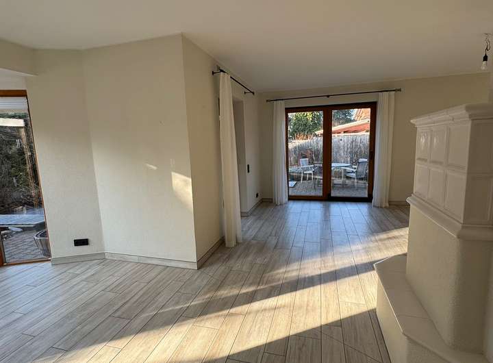 Durch den überdachten Hauseingang geht es über die angenehm große Diele zu den Räumen Garderobe, Gäste-WC, Abstellraum, Küche und in das gemütliche Wohnzimmer, in dem der Essbereich in einem bodentief verglasten Erker angelegt ist. Durch die enorme Helligkeit in diesen Räumen und der Rundumblick in den liebevoll angelegten Garten genießt man die gehobene Wohnqualität in erster Reihe mit direktem Zugang auf die überdachte Südterrasse.