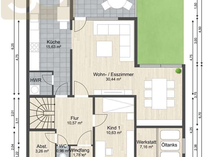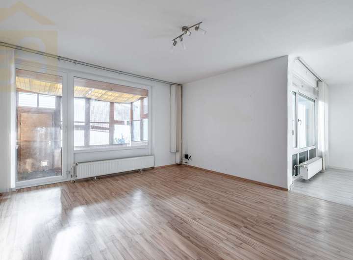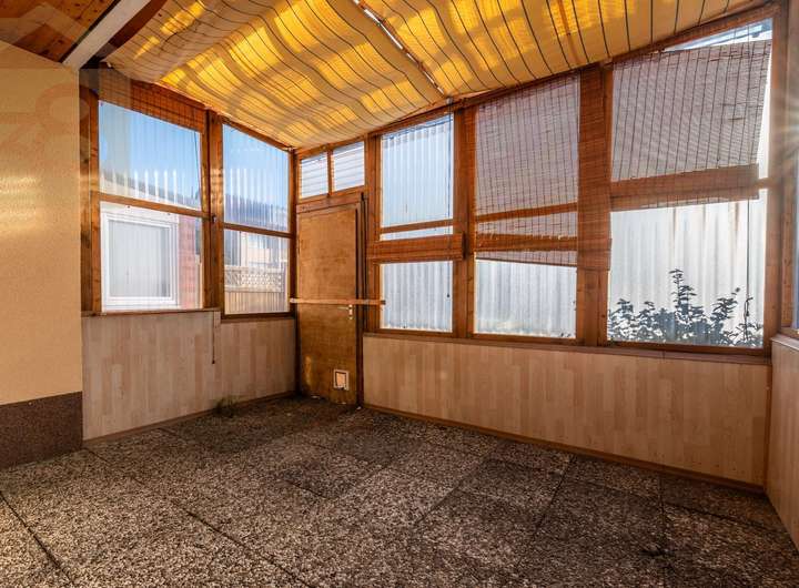 Im Erdgeschoss empfängt ein Flur die Bewohner und Gäste. Von hier aus sind ein Gäste-WC sowie ein praktischer Abstellraum erreichbar. Die Küche ist mit einer Küchenzeile ausgestattet und ein Hauswirtschaftsraum bietet zusätzlichen Platz für den täglichen Bedarf. Das großzügige Wohnzimmer bildet den Mittelpunkt des Hauses. Es verfügt über einen direkten Zugang zum Wintergarten und in den Garten. Durch den um die Ecke erweiterten Wohnbereich entsteht zusätzlicher Raum, der sich ideal als Essbereich oder gemütliche Sitzecke nutzen lässt. Ein weiteres Zimmer im Erdgeschoss kann als Schlaf-/ Kinderzimmer genutzt werden.