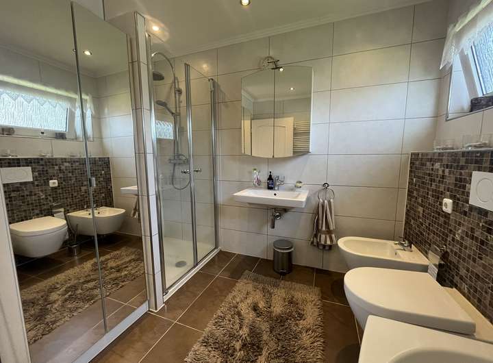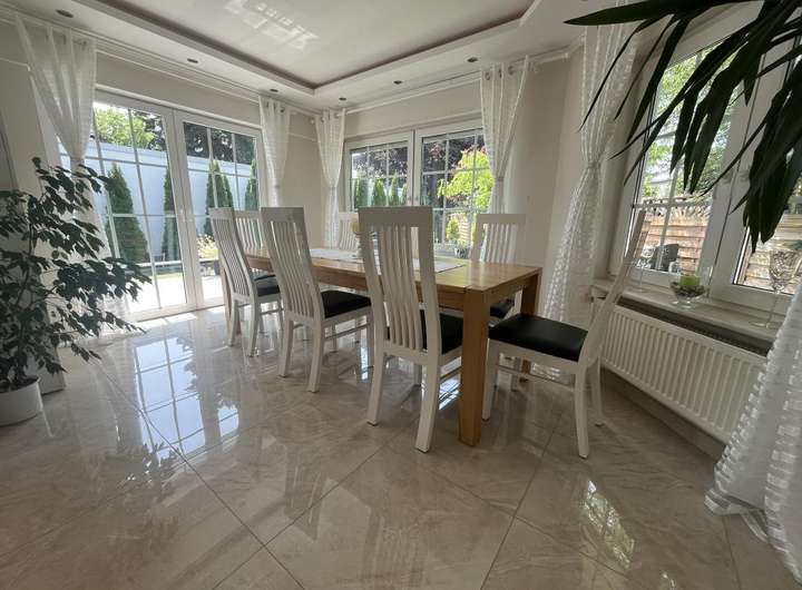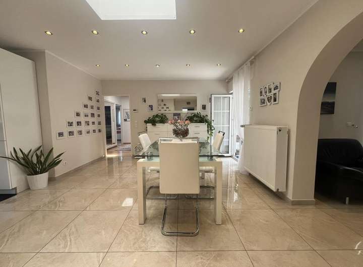 Die vorhandene Wohnfläche beträgt aktuell ca. 253?m², verteilt auf Erd- und Untergeschoss mit insgesamt 8 Zimmern. Alle Räume wurden bereits modernisiert und überzeugen durch ihre Helligkeit und hochwertige Ausstattung.