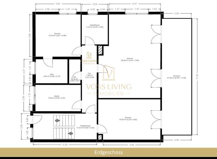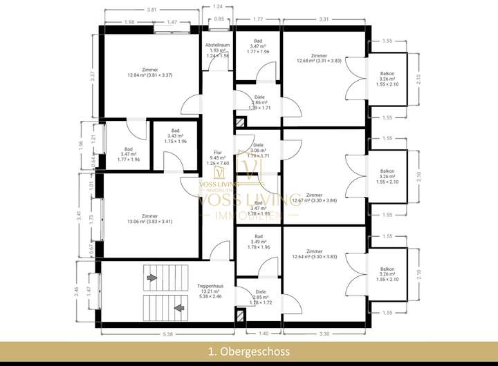 Vertragspartnern/Verkäufern oder anderen Auskunftsbefugten erteilten Auskünfte und Informationen. Die Angaben von Flächengrößen und Flächenmaß beruhen auf Informationen seitens der Verkäufer oder Dritter. Hierfür wird von der Firma Voss Living GmbH keinerlei Haftung für die Richtigkeit und Vollständigkeit übernommen. Irrtum und/oder Zwischenverkauf oder -Vermietung bleiben