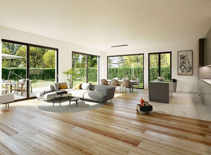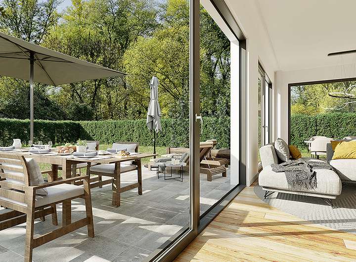 - Bodentiefe Fenster mit 3-fach-Verglasung und