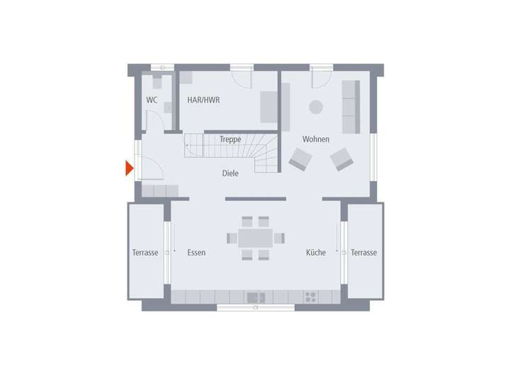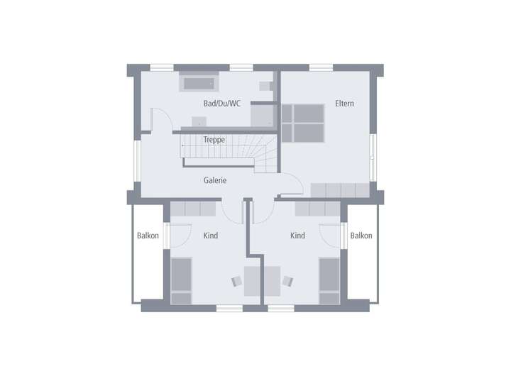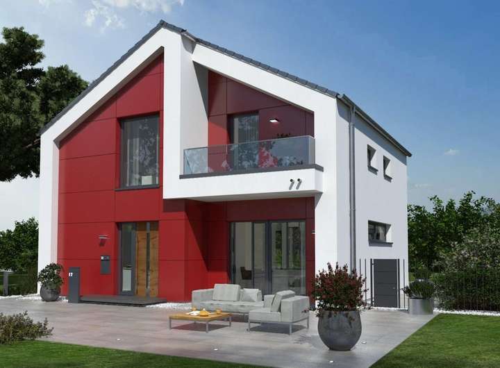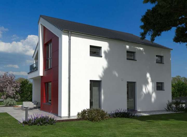 Mehr als nur Standard: Mit unserem Designhaus 17.2 erfüllen wir den Wunsch nach modernen, außergewöhnlichen Architekturkonzepten, in denen Komfort und Gemütlichkeit dennoch nicht zu kurz kommen. Dies erreichen wir durch durchdachte Raumlösungen wie dem ausgefallenen Ess- und Küchenbereich, bei dem sich die Küchenzeile entlang der gesamten Wandbreite zieht. An diesen offenen Gemeinschaftsbereich schließt sich das moderne Wohnzimmer an, das zum Verweilen einlädt. Ein Gäste-WC sowie der Hauswirtschaftsraum komplettieren das Raumkonzept des Erdgeschosses. Das Obergeschoss beherbergt beim Einfamilienhaus Design 17.2 wiederum die privaten Rückzugsmöglichkeiten für die ganze Familie. Hier findet sich neben zwei großen und hellen Kinderzimmern, die beide über einen kleinen Balkon verfügen, auch der Schlafbereich der Eltern, der viel Platz für Bett, Schränke und Co. bietet. Ein großes Bad mit Dusche und Badewanne rundet das Design der Etage gekonnt ab und ist über die offene Galerie zu erreichen.