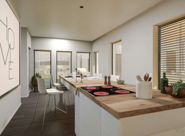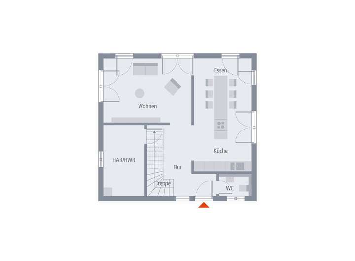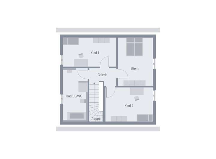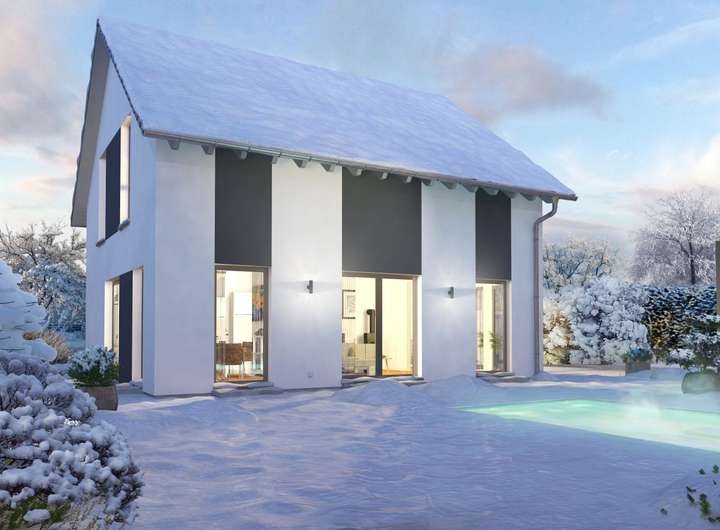 Geschmackvoll, lichtdurchflutet und offen - so lässt sich unser Haus Design 11 charakterisieren. Unter dem zeitlos-eleganten Satteldach laden rund 135 m² Wohnfläche zum Leben, Wohlfühlen und Träumen ein. Die offene Architektur im Erdgeschoss vermittelt ein Gefühl von Weite, ohne dabei an Gemütlichkeit und Behaglichkeit einzubüßen. Dafür sorgt die besondere Raumeinteilung: Die geräumige Diele geht - lediglich getrennt durch einen kleinen Vorsprung - direkt in den Koch- und Ess-Bereich über. Und der besticht nicht nur durch seine Größe, sondern auch durch seine Helligkeit. Dafür sorgen zahlreiche Fenster, die einen direkten Blick in den Garten gewähren. Auch das Wohnzimmer ist unmittelbar von der Diele aus zugänglich und mit seinen knapp 20 m² ein echter Wohlfühlort. Ebenfalls Parterre: Hauswirtschaftsraum sowie Gäste-WC. Über die Diele führt eine halbgewendelte Treppe in den Bereich, in dem Erholung und Entspannung im Fokus stehen. Hier befinden sich neben dem Schlafzimmer für die Eltern noch zwei Kinderzimmer sowie ein großes Bad. So geht stilvoll Wohnen.