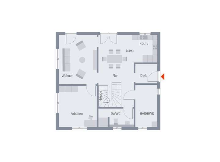 Bei Design 15 sind klassische Architektur und zeitgemäße Innenraumgestaltung perfekt aufeinander abgestimmt. 155 m2, verteilt auf zwei Etagen, bieten einen gehobenen Wohnkomfort. Durch den großzügigen Schnitt, den hohen Lichteinfall und die offene Bauweise entsteht ein einzigartiges Wohnambiente. Hauswirtschaftsraum, Arbeitszimmer und Duschbad runden das Raumangebot ab. Die zentral gelegene, halbgewendelte Treppe ist in den Wohnbereich integriert und öffnet die Etage räumlich und optisch. Die vier Räume im Obergeschoss bieten zusätzlichen Gestaltungs- und Nutzungsspielraum.