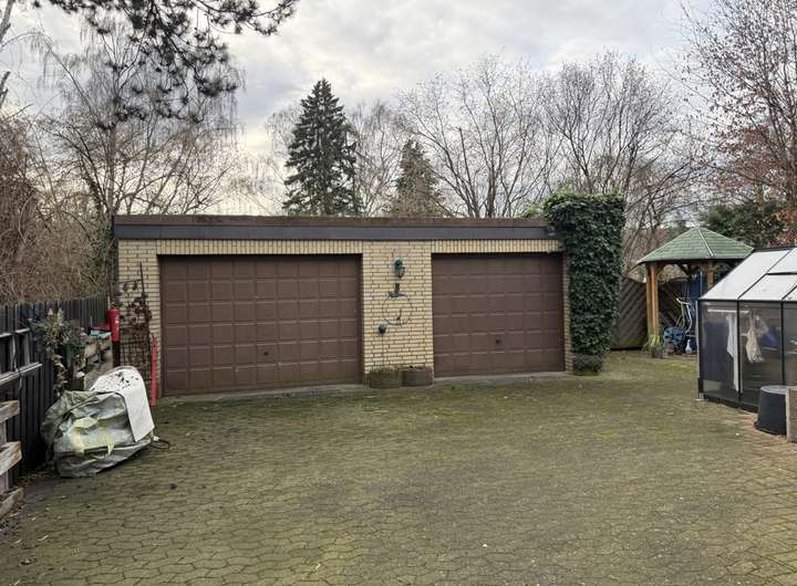 Zusätzlich stehen zwei große Garagen mit insgesamt ca. 90 m² Fläche zur Verfügung – ideal für Fahrzeuge, Hobby, Werkstatt oder zusätzlichen Stauraum.