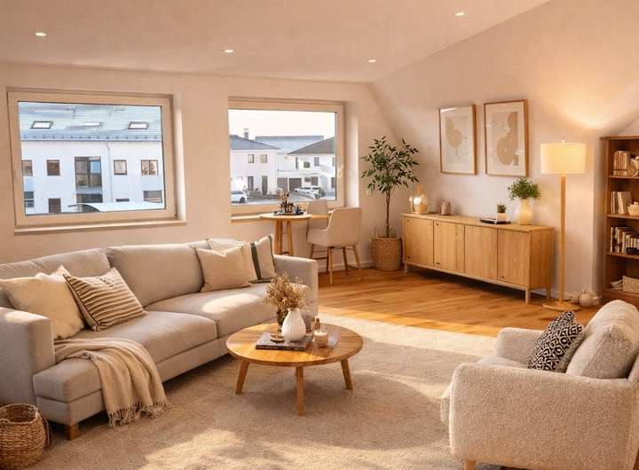 Auf rund 305 m² Wohnfläche, verteilt über vier Ebenen, eröffnet sich ein durchdachtes Raumkonzept mit klaren Linien, großzügigen Sichtachsen und lichtdurchfluteten Räumen. Bodentiefe Energiesparfenster schaffen fließende Übergänge zwischen Innen- und Außenbereich und unterstreichen den offenen, repräsentativen Charakter des Hauses.