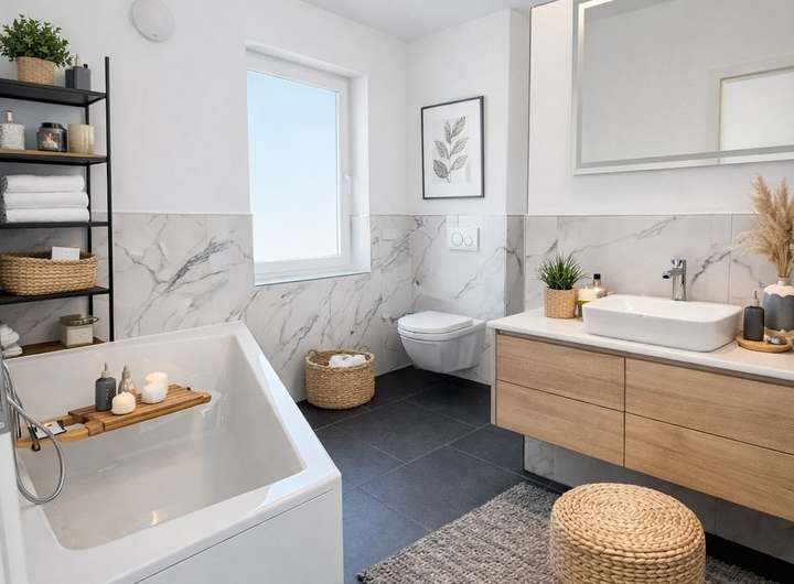Exklusive Sanitärausstattung (Grohe, Villeroy & Boch, Geberit, Duravit)