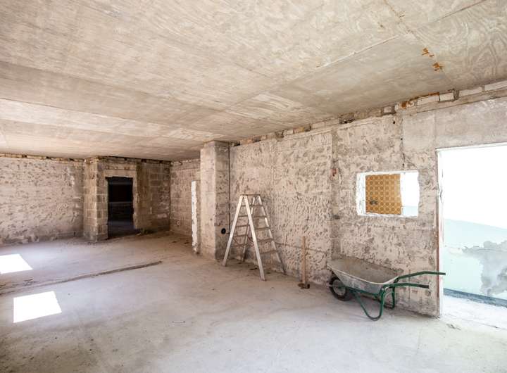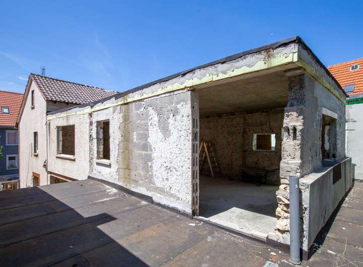 Bereits vorhanden sind alle neu betonierten Zwischendecken und die Bodenplatte. Hervorzuheben ist die erhöhte Deckenhöhe im Erdgeschoss, die ein offenes Raumgefühl verspricht. Das Gebäude umfasst zwei Einheiten und erstreckt sich über drei Ebenen. Dabei verteilen sich ca. 302 qm Wohn- und Nutzfläche harmonisch auf das gesamte Haus.