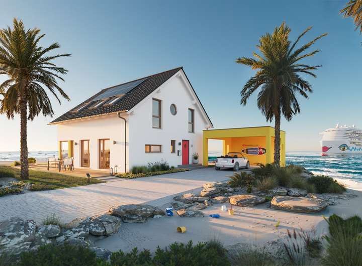 Finanziere dein Traumhaus mit dem Zuhause-Darlehen, das dir bis zu 250.000 EUR zu einem besonders günstigen Zinssatz bietet. Das Zuhause-Paket sorgt dafür, dass dein Haus mit einer hochwertigen Grundausstattung geliefert wird, inklusive moderner Böden und stilvollen Sanitäranlagen. Und wenn du gerne selbst Hand anlegst, zeigt dir das DIY-Ausbau-Coaching in nur drei Tagen, wie du deinen Innenausbau selbst umsetzen kannst - perfekt für alle, die kreativ werden wollen!