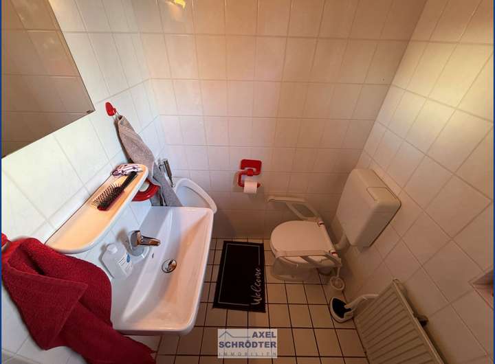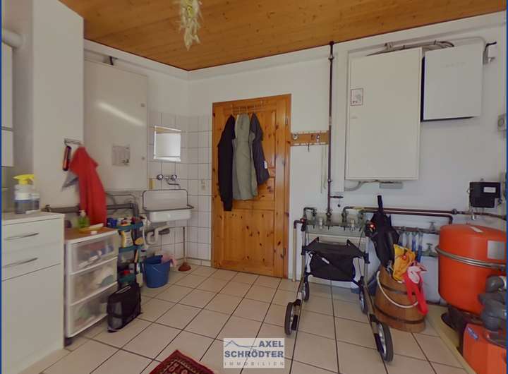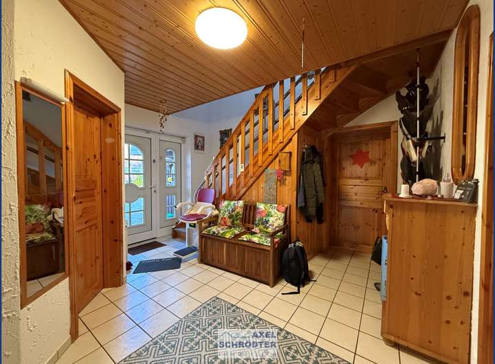 - Fußbodenbelag: EG Fliesen, OG Holz/Parkett