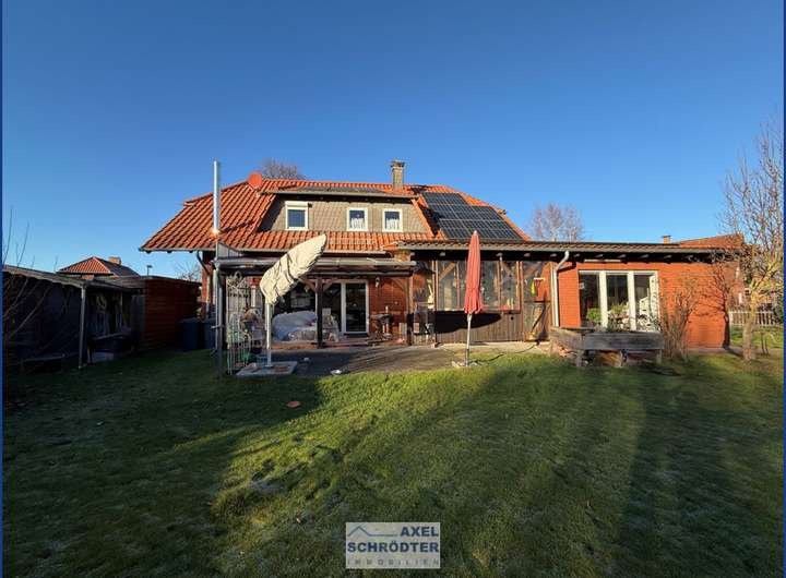 Massives Einfamilienhaus mit Schwimmbad-Anbau und Doppelgarage. Das Haus wurde stets gepflegt und modernisiert z.B. PV-Anlage mit Speicher, solare Brauchwassererwärmung, Wallbox, Einbauküche, Bad-Sanierung. Es bietet viel Platz und eignet sich ideal für eine kleine Familie.