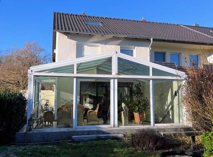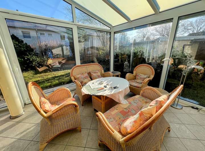 Das Haus verfügt über eine Wohnfläche von circa 99 m² zzgl. einem nachträglich angebauten Wintergarten. Helle Räume und vielfältige Nutzungsmöglichkeiten für Familien, Paare oder Personen mit Platzbedarf.