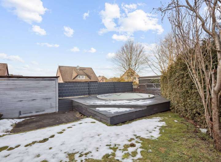 Vom Wohnzimmer aus gelangen Sie direkt auf die sonnige Terrasse – ein echtes Highlight dieser Immobilie. Ob entspannte Sommerabende mit einem Glas Wein, gesellige Stunden mit Familie und Freunden oder ruhige Momente im Liegestuhl: Hier genießen Sie Ihre Freizeit in vollen Zügen. Der liebevoll und pflegeleicht angelegte Garten verfügt zudem über einen Pool und bietet Ihnen Ihre ganz persönliche Wohlfühloase.