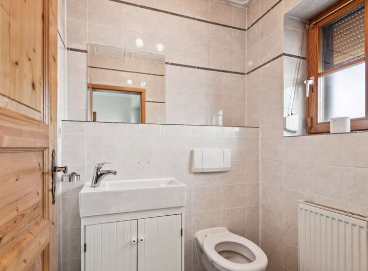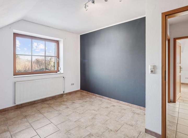 Isolierverglaste Holzfenster mit Rollläden unterstreichen den soliden und gepflegten Eindruck des Hauses. Beheizt wird die Immobilie über eine sparsame Gaszentralheizung. Diese befindet sich auf dem ausgebauten, gut isolierten und mit Holzpaneele verkleideten Dachboden.