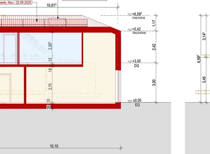 Eine Baugenehmigung liegt vor für 148qm Wohnfläche und 26qm Nutzfläche über zwei Wohneinheiten.
