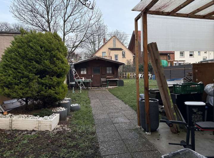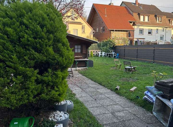 Der große Garten mit Gartenhütte lädt zum Verweilen ein und bietet Kindern viel Platz zum Spielen. Im Hof stehen 1–2 Außenstellplätze zur Verfügung – ein echter Komfortvorteil im Frankfurter Stadtgebiet.