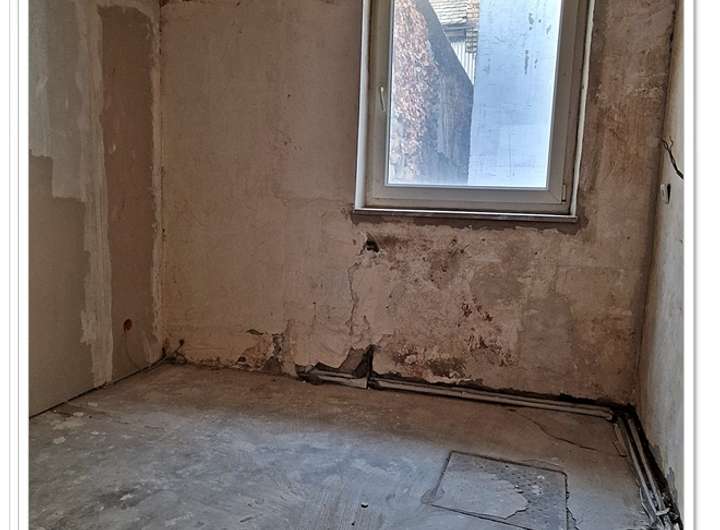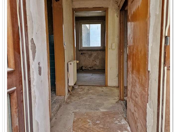 Bevor es zur kleinen Hoffläche geht, gibt es noch zwei nicht sanierte Zimmer. Auch befindet sich hier der Kellerabgang.