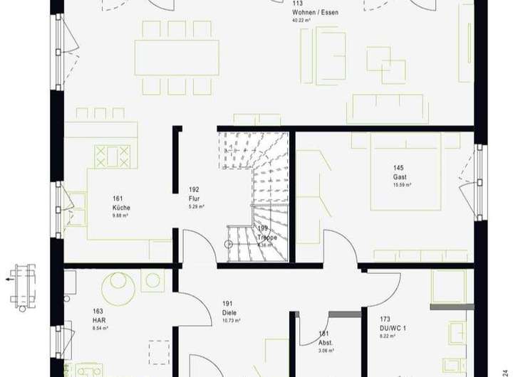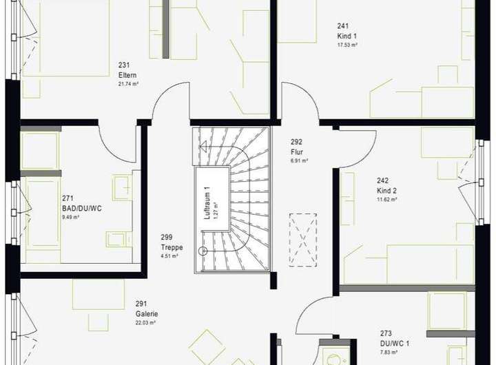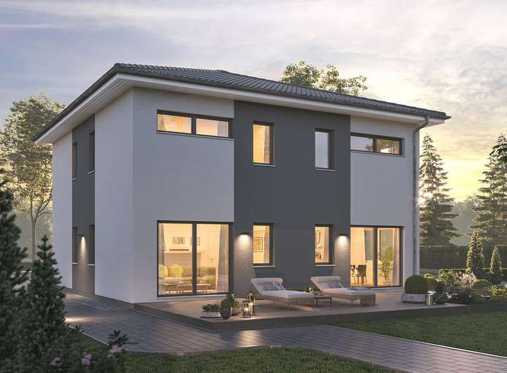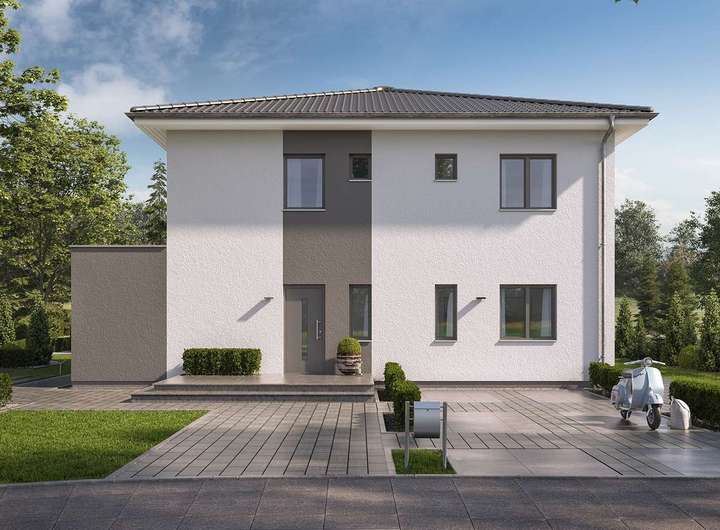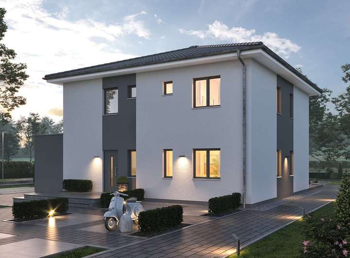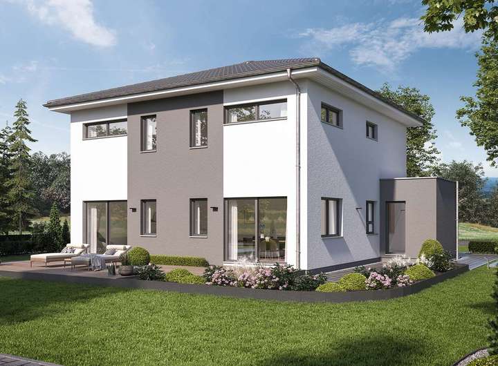 Die Stadtvilla LifeStyle 20.02 W ist ein echtes Raumwunder: Auf der großzügigen Nettogrundfläche mit ca. 210,10 m² lassen sich fast alle Wohn- und Lebensvorstellungen verwirklichen. Unterstützt wird diese freie Raumgestaltung durch die mittig integrierte Treppe, die an den offenen, umfassenden Wohn-, Ess- und Küchenbereich auf raffinierte Weise angegliedert ist. Genügend Freiraum für eine individuelle Raumgestaltung bietet sich auch im Obergeschoss: Mit begehbarer Ankleide und einem großen Wohlfühlbad genießt man im Elternzimmer Wohnkomfort.