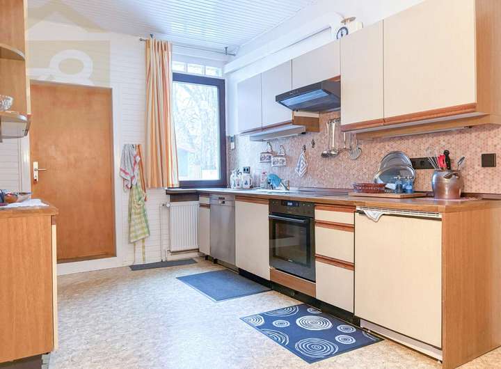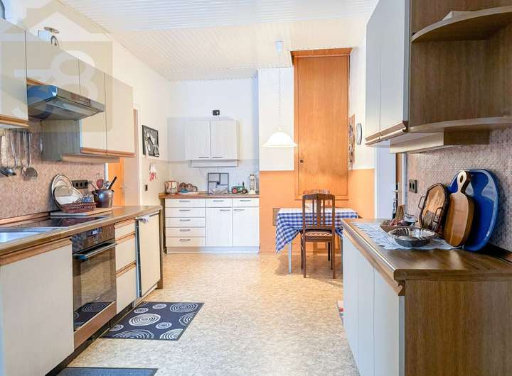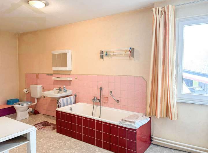 Im Erdgeschoss des Hauses befinden sich eine geräumige Küche, ein offener und lichtdurchfluteter Wohn- und Essbereich sowie ein Schlafzimmer, das sich ideal als Elternschlafzimmer, Gästezimmer oder Büro nutzen lässt. Von der Küche aus besteht ein direkter Zugang zur alten Stallung, was den ursprünglichen Charakter des Hauses unterstreicht und zahlreiche Ausbaumöglichkeiten eröffnet, sei es für Hobbyräume, Lagernutzung oder eine zukünftige Erweiterung des Wohnraums.