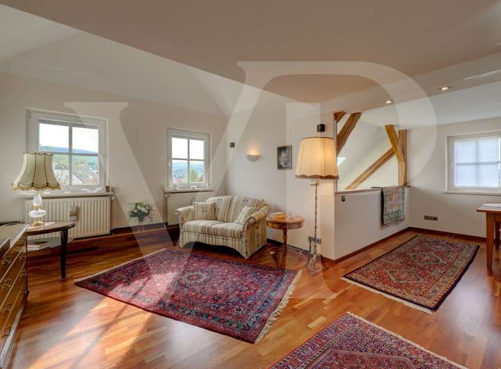 Aus den lichtdurchfluteten Wohnräumen wie auch von den Terrassen eröffnet sich ein postkartenreifer Blick in den parkähnlichen Garten und über das Anspacher Tal.