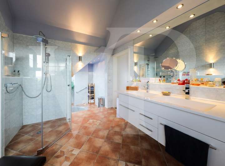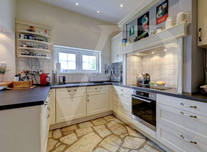 Zu den besonderen Ausstattungsdetails zählen u.a. mehrere Einbauküchen, exklusive Badezimmer, weiße Sprossen-Fenster und -Haustüren, elektrische Rollläden, Fußbodenheizung, Kirschbaumparkett, Natursteinböden, etc.