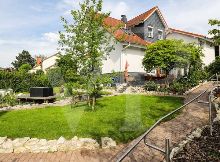 Privatsphäre, Weitblick, Wertigkeit: EFH mit Gartenidyll, Gästehaus, Apt., Kamin, EBK, Doppelgarage