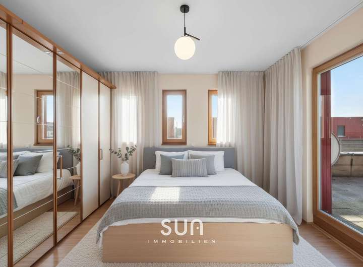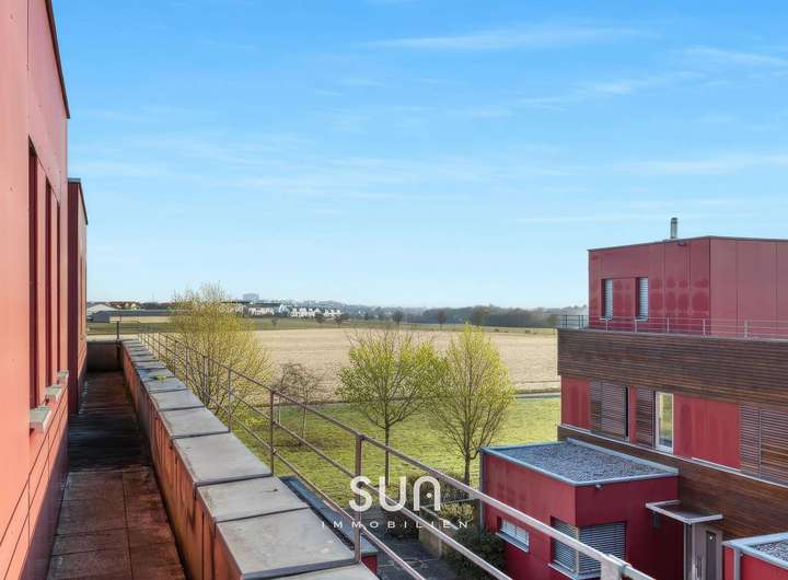 • Großzügige Dachterrasse mit freiem Blick über Felder und ins Umland
