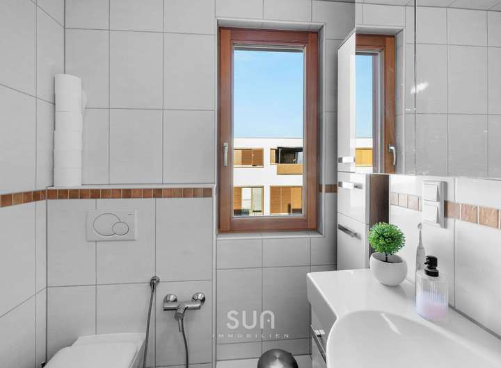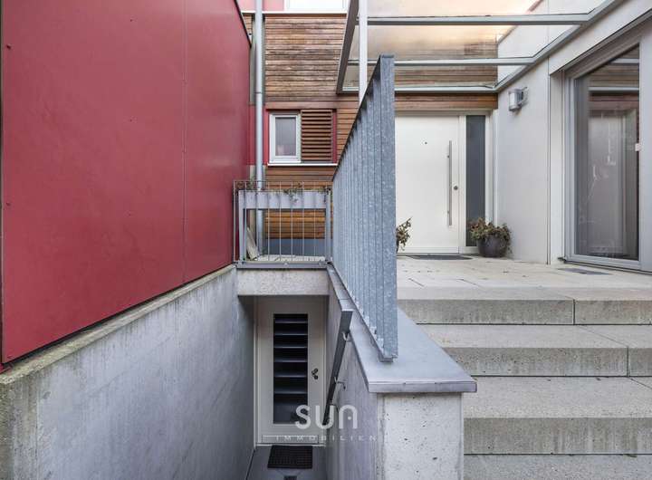 Die oberirdische Wohnfläche beträgt ca. 160 m². Darüber hinaus stehen im Untergeschoss ca. 58 m² zusätzliche Nutzfläche zur Verfügung, die nicht in die Wohnfläche eingerechnet ist. Dieser Bereich ist vollständig beheizt, mit Bad, Küche, Fenstern zur Belüftung sowie Anbindung an die zentrale Be- und Entlüftungsanlage ausgestattet und kann somit problemlos als Wohnraum genutzt werden.