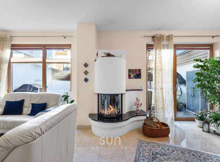 • Abgesenkter Wohn- und Essbereich mit Fußbodenheizung und Kamin