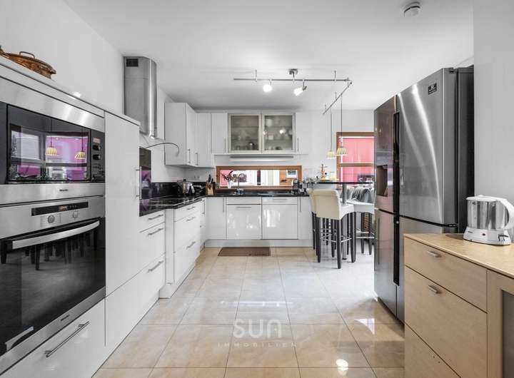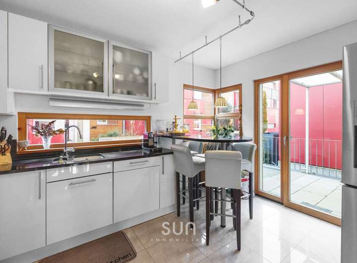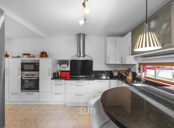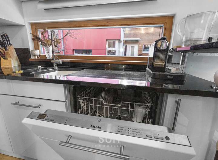 • Hochwertige Schüller-Einbauküche mit sämtlichen Miele-Geräten, Eck-Bar