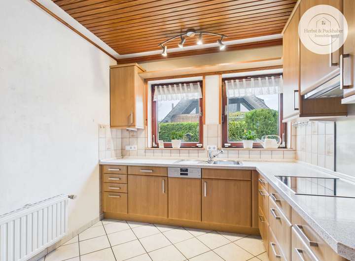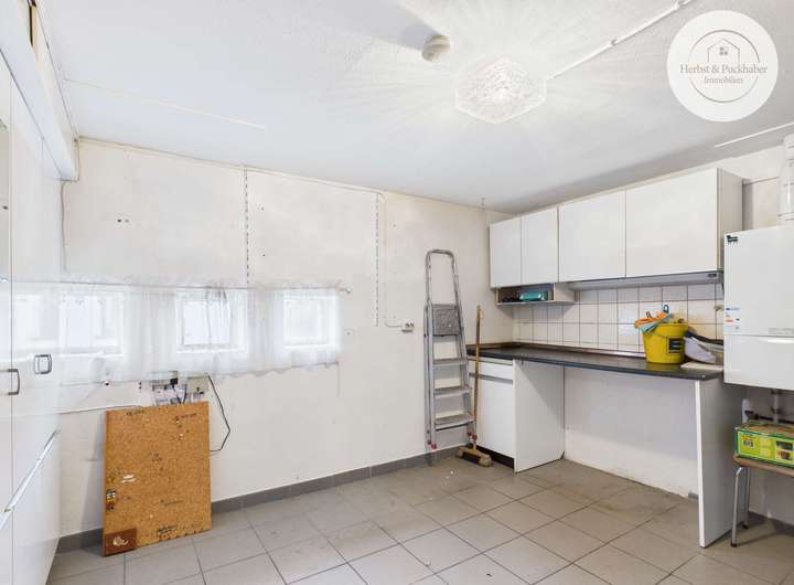 • Ebenerdiges Erdgeschoss mit drei Zimmern, Küche, Bad und Hauswirtschaftsraum