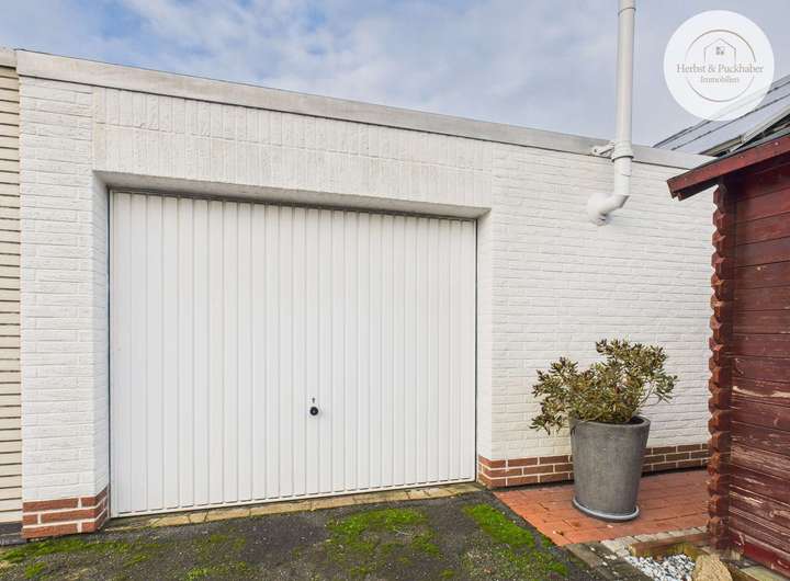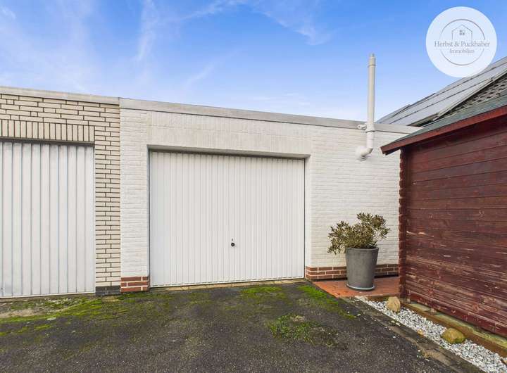 Zur Immobilie gehört außerdem eine separate Garage mit elektrischem Tor und ein vorgelagerter Stellplatz auf einem nahegelegenen Grundstück.