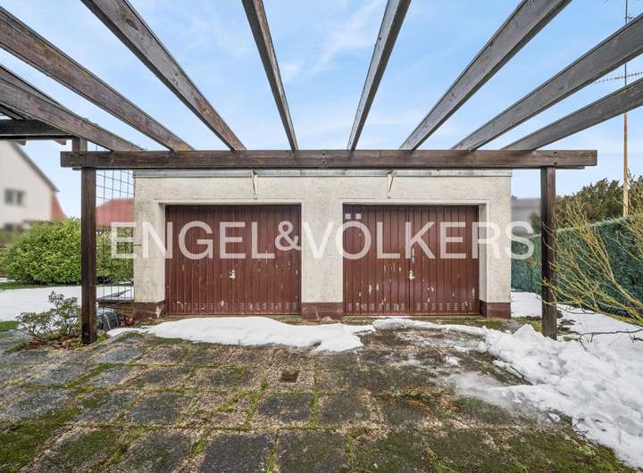 Für komfortables Parken sorgt eine praktische Doppelgarage, die ausreichend Platz für zwei Fahrzeuge sowie zusätzlichen Stauraum bietet.