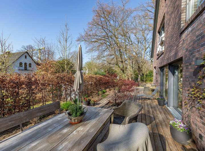 In begehrter und ruhiger Sackgassenlage, nur wenige Schritte vom idyllischen See Allhorndiek entfernt, erwartet Sie dieses außergewöhnlich hochwertig ausgestattete Einfamilienhaus. Eingebettet in eine grüne Umgebung mit direktem Zugang zu reizvollen Wanderwegen, ist dieses Zuhause ideal für Menschen mit Sinn für Qualität, Komfort und ein naturnahes Lebensumfeld.