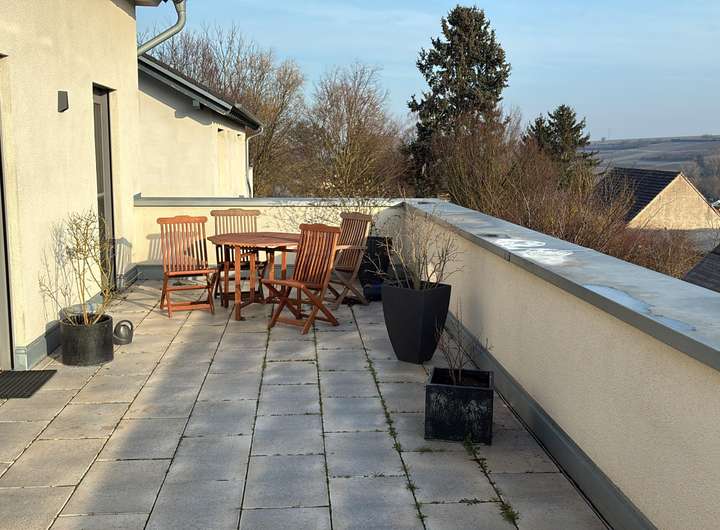 Das Erdgeschoss verfügt über eine 70 m² große Terrasse mit einer wundervollen Aussicht über den ganzen Ort.