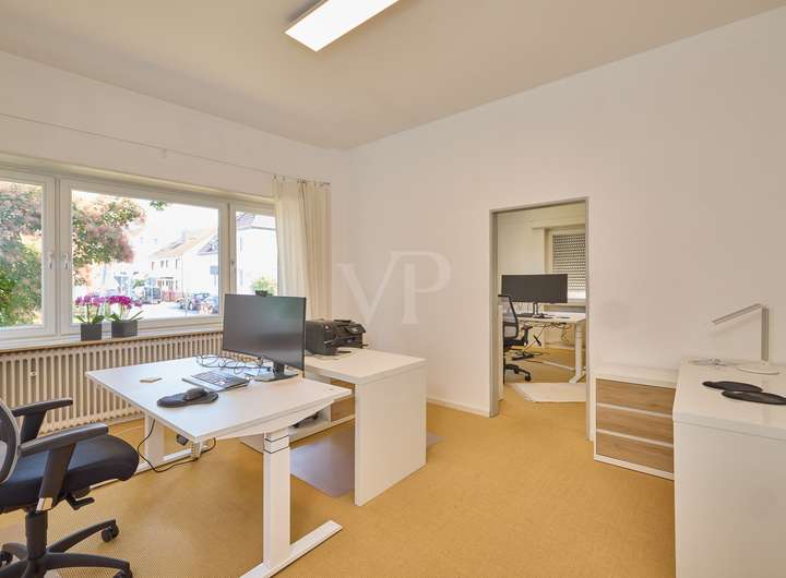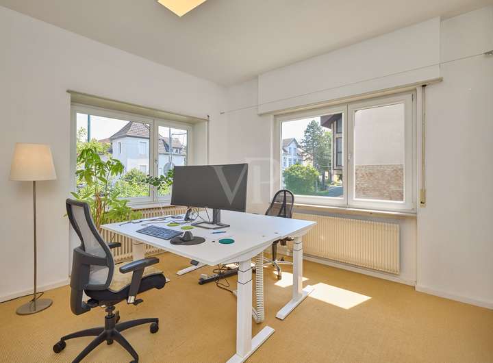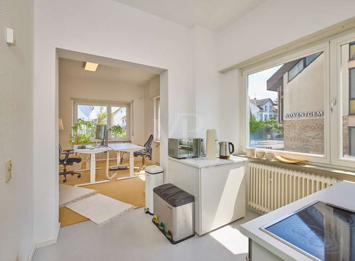 Die separaten Geschäftsräume im Erdgeschoss verfügen über eine Diele, ein WC, eine Küche und 3 helle Zimmer.