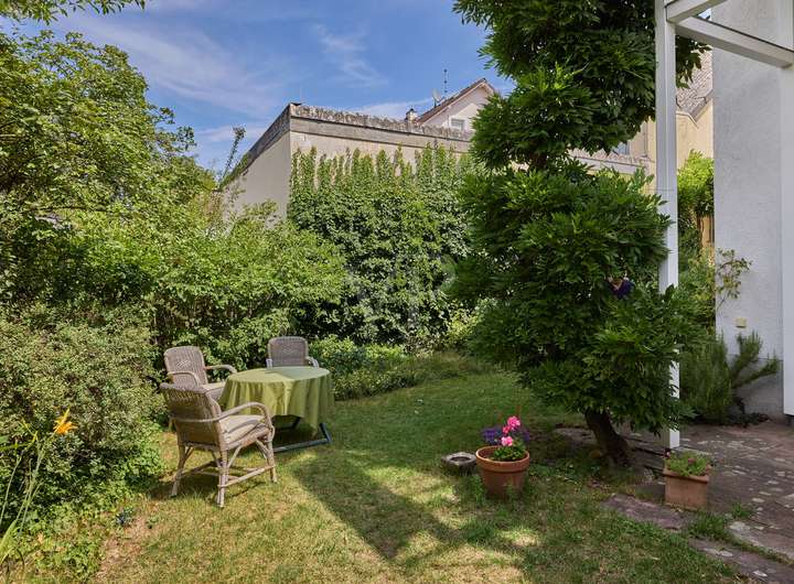 Von hier aus haben Sie einen schönen Blick in den gepflegten Garten.