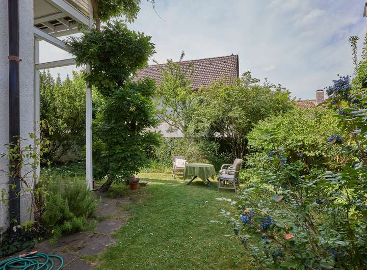 Der eingewachsene Gartenbereich bietet individuelle Nutzungsmöglichkeiten und lädt zum Verweilen im Freien ein.