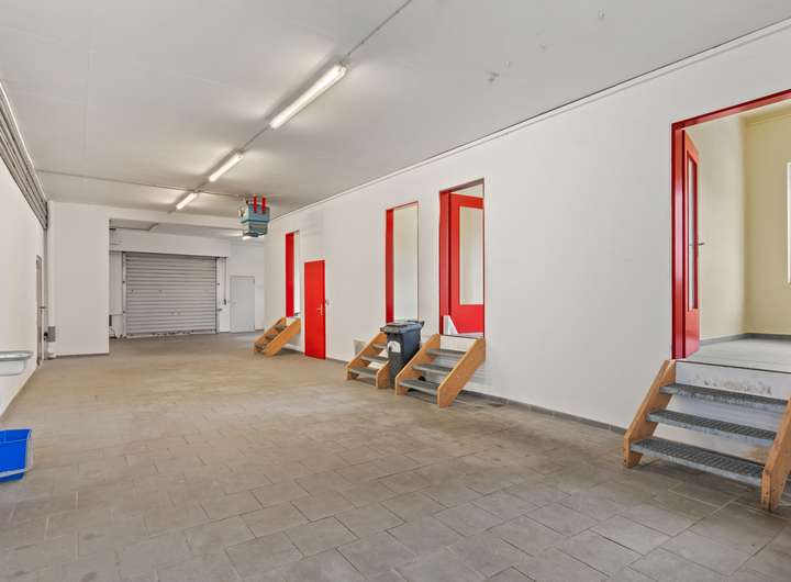 Die Gewerbefläche im Erdgeschoss erstreckt sich über ca. 238 m² und wird durch eine zusätzliche Lagerfläche im Keller mit ca. 32,5 m² ergänzt. Die Fläche ist in vier Lagerräume unterteilt, die sich in direkter Nähe zur Anlieferungszone befinden. Darüber hinaus stehen eine E-Werkstatt sowie ein separates Schwergutlager zur Verfügung, was die Fläche besonders für handwerkliche oder lagerbasierte Nutzungen attraktiv macht.