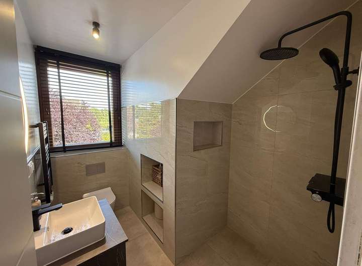 • Frisch modernisierte Bäder mit stilvollen Fliesen, Walk-In-Regendusche und hochwertigen Armaturen