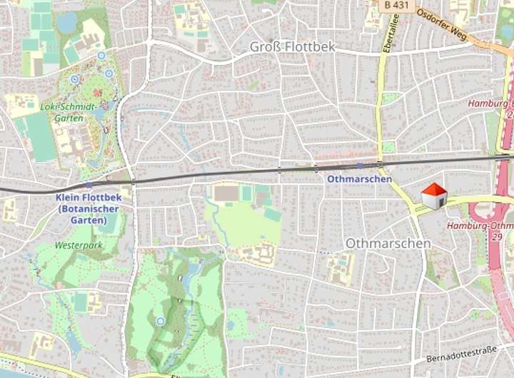 Einkaufsmöglichkeiten befinden sich in unmittelbarer Nähe – sowohl die gehobene Waitzstraße mit ihren individuellen Fachgeschäften als auch das Elbe-Einkaufszentrum mit einem vielfältigen Angebot an Einzelhandel und Gastronomie. Für Familien besonders attraktiv ist die hervorragende Bildungsinfrastruktur: Das traditionsreiche Christianeum, das Gymnasium Othmarschen sowie die Grundschule Klein Flottbeker Weg liegen in direkter Umgebung. Die Nähe zur Elbe und der weitläufige Jenischpark bieten ideale Voraussetzungen für Freizeit, Sport und Erholung im Grünen – bequem erreichbar und dennoch Teil des urbanen Lebens. Die Lage bietet eine ausgezeichnete Anbindung: Die Autobahnauffahrt Othmarschen (A7) ist sofort erreichbar und ermöglicht eine zügige Verbindung in in das Umland und zum Flughafen. Auch die Innenstadt und der beliebte und bunte Stadtteil Ottensen sind kurzfristig zu erreichen. Der S-Bahnhof Othmarschen ist fußläufig erreichbar und gewährleistet eine schnelle Anbindung an den öffentlichen Nahverkehr.
