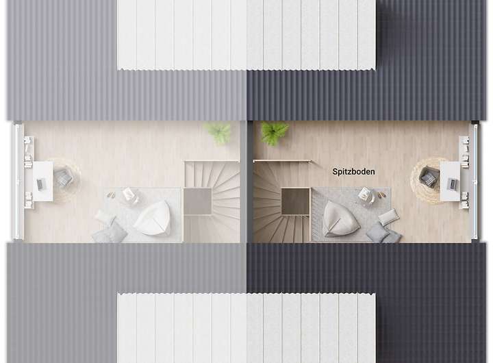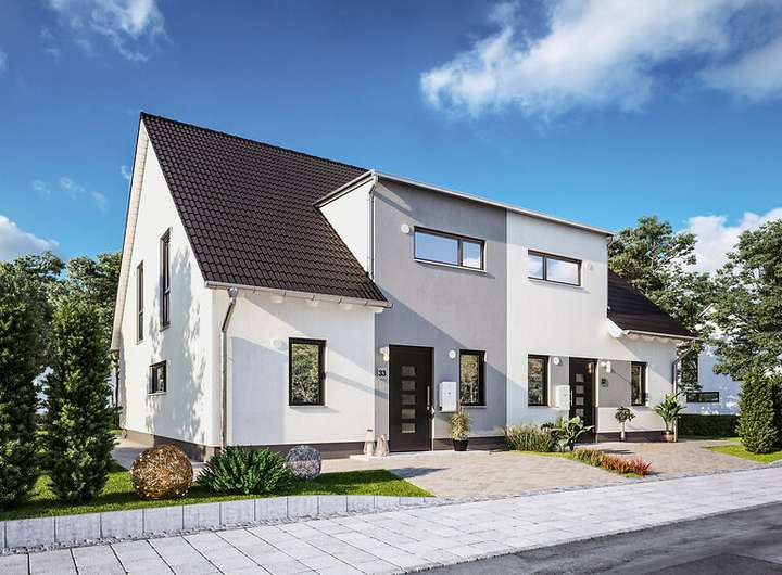 Auch optisch ist das Doppelhaus Duett 125 ein echter Hingucker. Die moderne, gradlinige Architektur überzeugt und bei der Fassadengestaltung können farbliche Akzente gesetzt werden. Das Duett 125 eignet sich auch für kleine Grundstücke, da es die vorhandene Grundstücksfläche optimal ausnutzt und trotzdem viel Wohnraum für zwei Familien bietet.