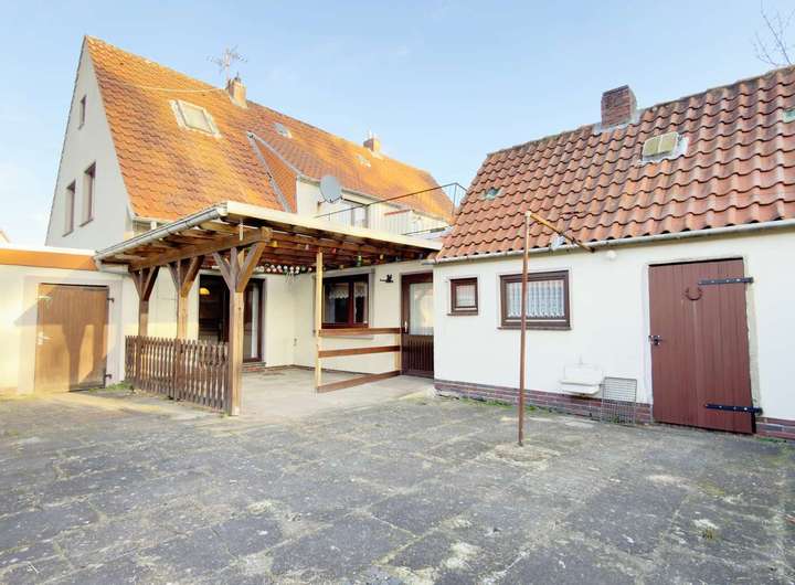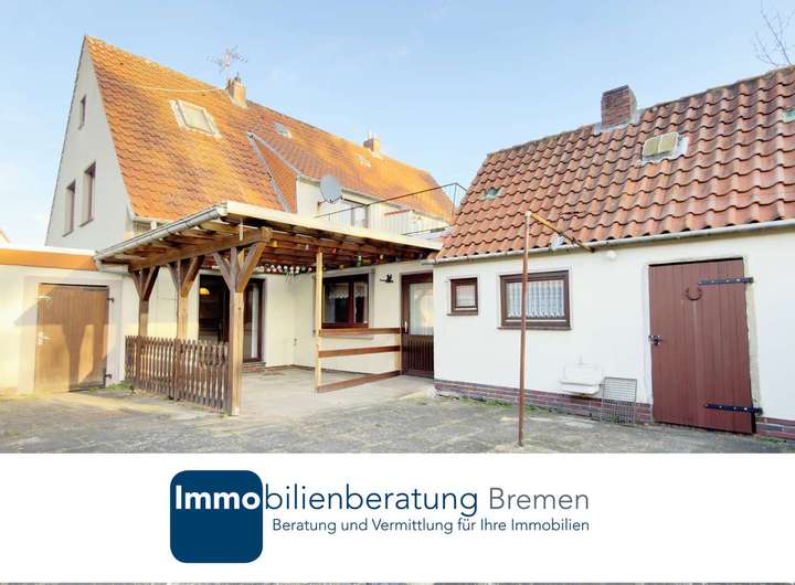 Bei der angebotenen Immobilie handelt es sich um eine in Teilen sanierungsbedürftige Doppelhaushälfte auf einem ca. 794 m² großen Grundstück in Delmenhorst. Das Haus wurde ca. im Jahr 1960 erbaut und verfügt über eine Wohnfläche von ca. 121 m², die sich auf sechs Zimmer verteilt. Im Erdgeschoss befinden sich das Wohnzimmer, das Esszimmer, die Stube, die Küche und ein Gäste-WC mit dem danebenliegenden Hauswirtschaftsraum. Im Obergeschoss befinden sich die zwei Schlafzimmer, das Badezimmer sowie das Arbeitszimmer mit Zugang zur Dachterrasse. Die Haustür sowie ein Teil der Fenster wurden ca. 2023 ausgetauscht. Als Bodenbelag wurde hauptsächlich PVC, Fliesen und Teppich verwendet. Zu der Immobilie gehört außerdem eine Doppelgarage und Außenstellplätze. Im Keller befinden sich zusätzliche Abstellmöglichkeiten. Der Garten bietet viel Platz zum Entspannen. Die Terrasse ist überdacht. Die Doppelhaushälfte eignet sich ideal für handwerklich begabte Käufer, die das Haus nach ihren Vorstellungen gestalten möchten.