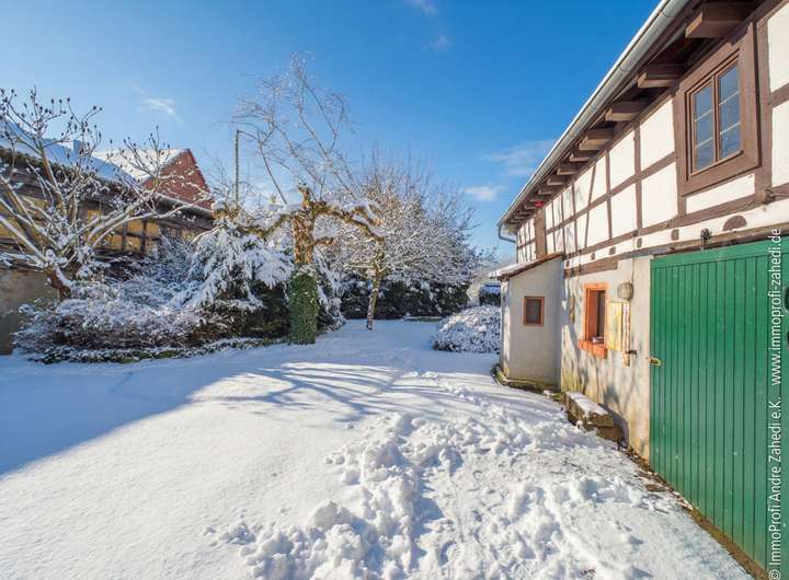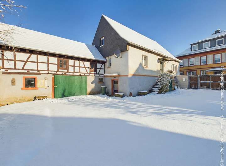 - Ehemalige Hofreite – Einfamilienfachwerkhaus , teils unterkellert mit Seitenanbau, Platz unter anderem für einen Pkw