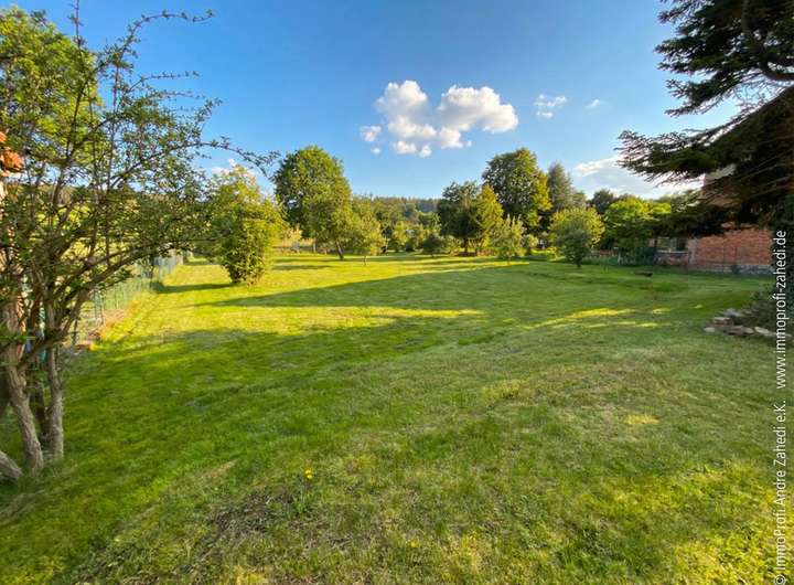 Das Herzstück ist das außergewöhnlich große Grundstück mit 1.826 m². Besonders die rückwärtige Freifläche fühlt sich an wie ein eigener kleiner Abenteuerspielplatz – und grenzt direkt an die freie Natur. Während die Kinder über die Wiese rennen, spielen und entdecken, können Sie in Ruhe durchatmen, den Blick ins Grüne genießen und den Alltag einfach draußen lassen.
