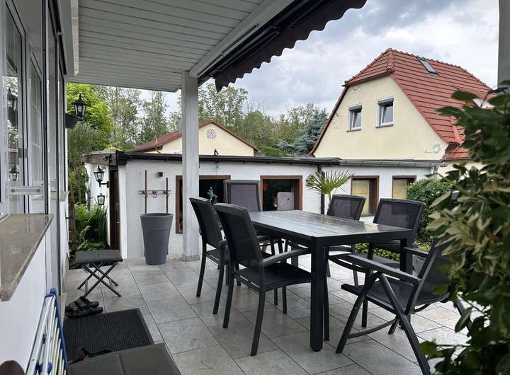 - Überdachte Terrasse mit Markise
