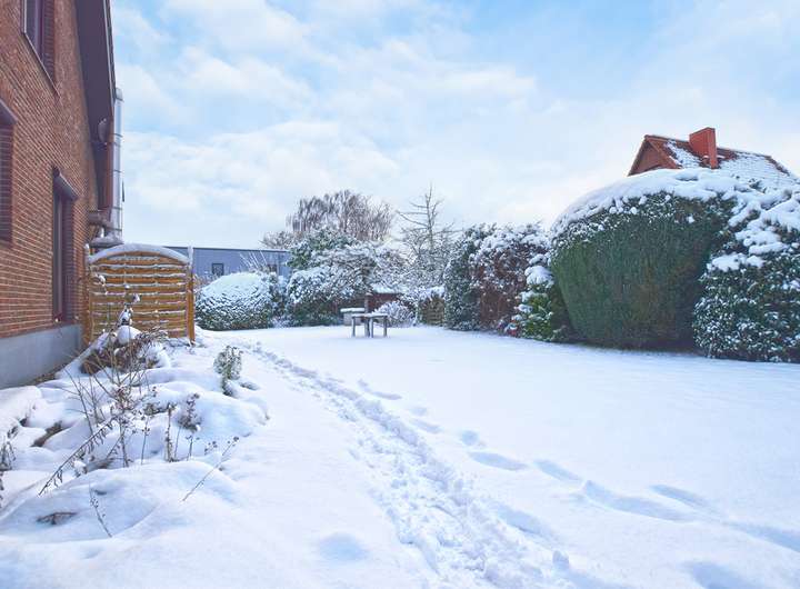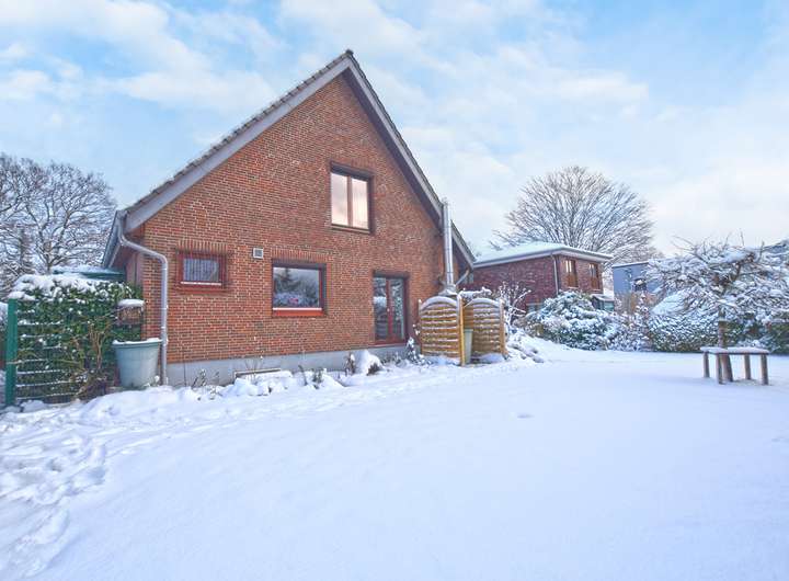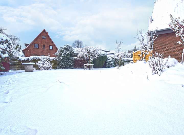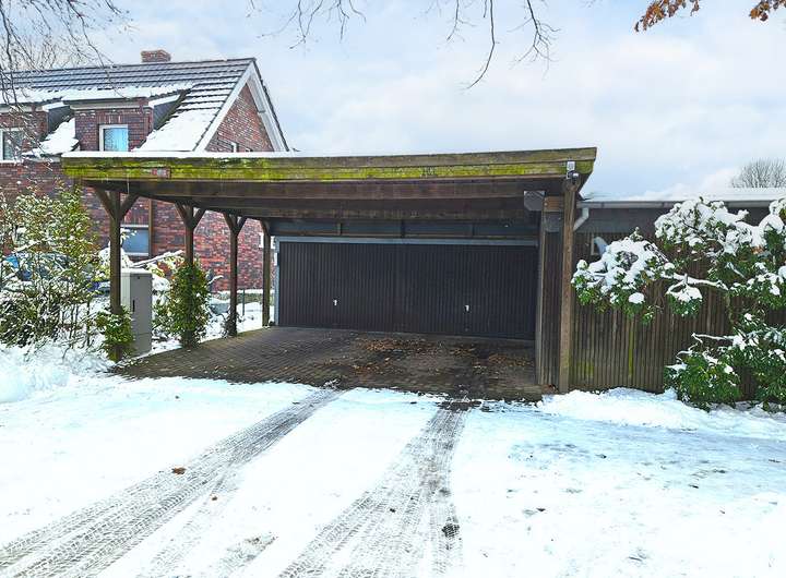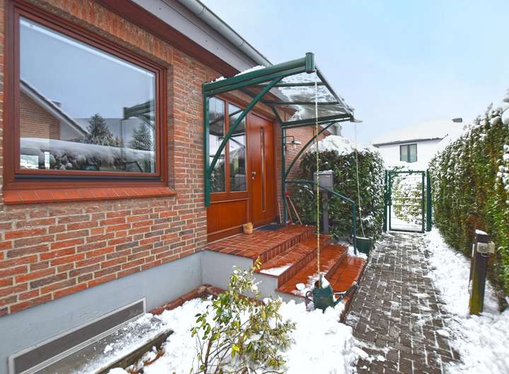 Hinter dem Haus – ohne jeglichen Autokontakt – steht Ihnen ein breiter und immergrün eingerahmter Garten zur Verfügung. Die Terrasse vor dem Wohnbereich liegt leicht erhöht. Gartenhaus, Garage und ein Carport runden das Angebot ab.